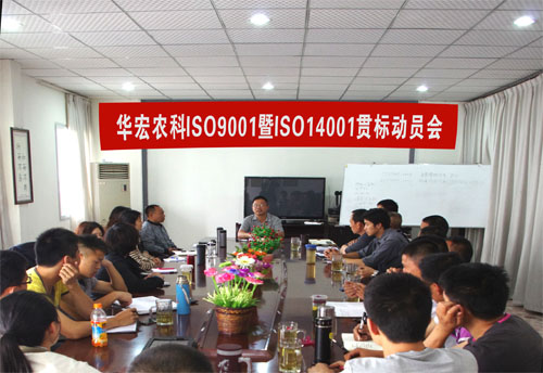 2013年5月6日,公司召開了ISO9001和ISO14001動員會,公司董事長、總經理李智強、副總經理何金波及全體管理人員31人參加,李總做了動員講話,何總主持會議,咨詢公司高級咨詢師譚光華進行了貫標輔導。
