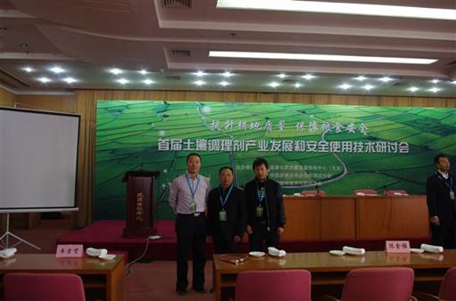 2013年11月28日至29日,首屆全國土壤調(diào)理劑產(chǎn)業(yè)發(fā)展和安全使用技術(shù)論壇在北京召開,我公司因在土壤調(diào)理劑產(chǎn)業(yè)的影響力受到會議邀請,董事長李智強、總農(nóng)藝師劉軍和副總經(jīng)理楊洋應(yīng)邀出席。 為了引導(dǎo)土壤調(diào)理劑產(chǎn)業(yè)健康發(fā)展,促進土壤調(diào)理劑科學(xué)合理使用,保障我國糧食安全和耕地質(zhì)量,由國家化肥質(zhì)量監(jiān)督檢驗中心(北京)、中國農(nóng)學(xué)會農(nóng)業(yè)分析測試分會及中國植物營養(yǎng)與肥料學(xué)會學(xué)術(shù)委員會和農(nóng)化測試專業(yè)委員會聯(lián)合舉辦了這次會議。會議期間,董事長李智強和副總經(jīng)理楊洋就我公司產(chǎn)品施地佳土壤調(diào)理劑跟與會專家和兄弟企業(yè)深入交流,總農(nóng)藝師劉軍圍繞土壤調(diào)理劑的產(chǎn)業(yè)發(fā)展、產(chǎn)品應(yīng)用效果、使用安全評價和未來發(fā)展方向等代表公司上臺發(fā)表了專業(yè)演講。
