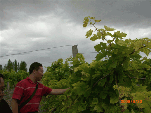 圖3:技術(shù)員察看葡萄長(zhǎng)勢(shì)