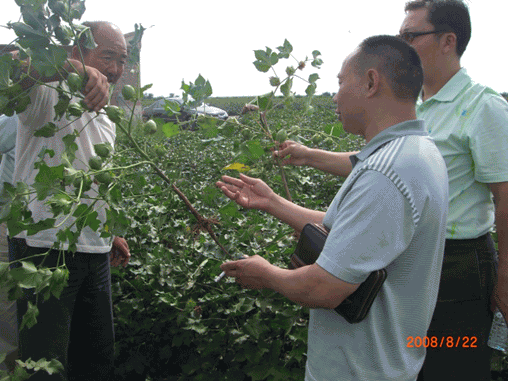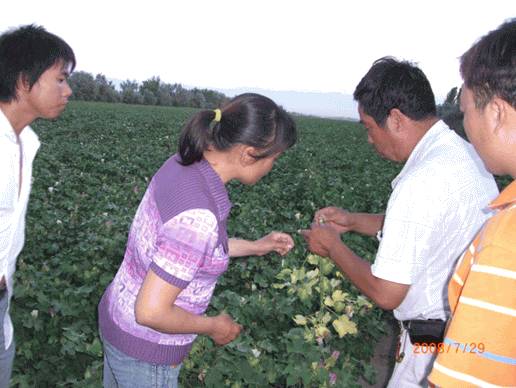圖4:技術(shù)員在仔細(xì)察看棉桃