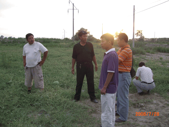 2008年,公司土壤改良劑在新疆兵團(tuán)124團(tuán)9連打瓜地里的試驗(yàn)示范圖片