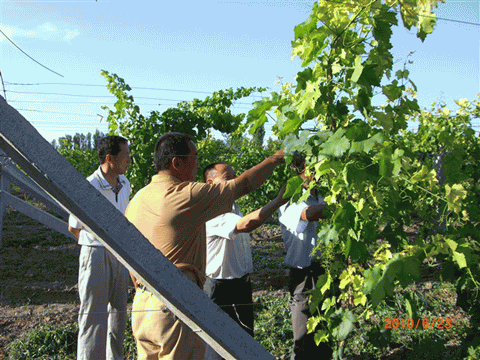 2010年6月,公司土壤改良劑救治新疆兵團(tuán)101團(tuán)的葡萄黃化?。ńM圖)