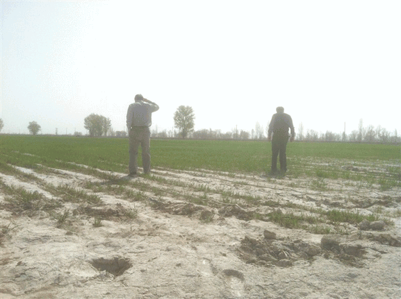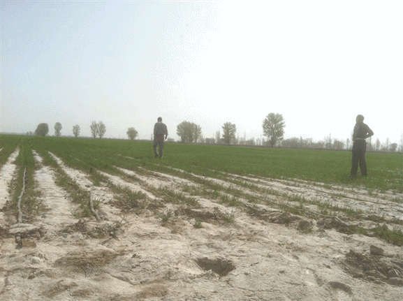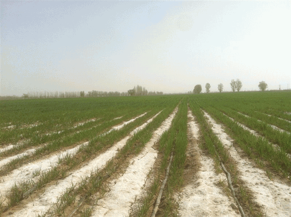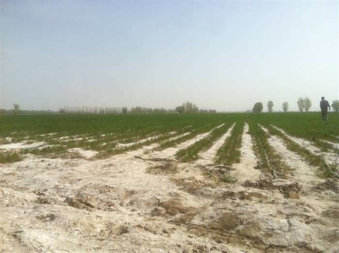 2012年,“施地佳”鹽堿土壤改良劑在新疆兵團(tuán)103團(tuán)重度鹽堿地第二年成功種植冬小麥圖