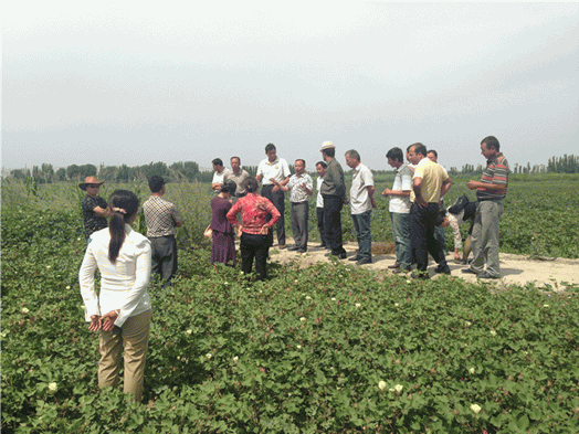 圖為:新疆兵團(tuán)第一師6團(tuán)的40畝棄荒地施用成都華宏生態(tài)農(nóng)業(yè)科技有限公司研發(fā)的“施地佳”土壤調(diào)理劑的棉花長勢實在可人。
