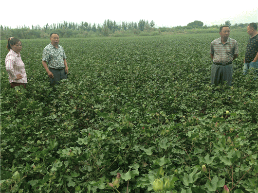 圖為:李總在問農(nóng)戶看見自己地理的棉花長得如此好的心情時,農(nóng)戶毫不掩飾地說,你們的產(chǎn)品太神奇了,我這塊地是別人不要的棄地,種這塊地不交承包費(fèi),收入會很可觀的,謝謝你們!