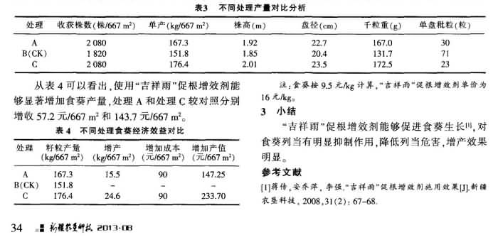 《新疆農(nóng)墾科技》2013年第8期 新型微生物菌劑“吉祥雨”在食葵上的應(yīng)用效果