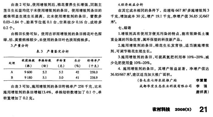 《農(nóng)村科技》2008年第5期 “吉祥雨”促根增效劑對(duì)棉花黃、枯萎病抗病性試驗(yàn)