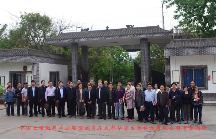 產(chǎn)業(yè)聯(lián)盟主要對四川生產(chǎn)土壤調(diào)理劑的3家企業(yè)和企業(yè)的試驗(yàn)地進(jìn)行現(xiàn)場考察。4月23日,聯(lián)盟成員首先來到成都華宏生物科技有限公司,對公司土壤調(diào)理劑生產(chǎn)設(shè)備、生產(chǎn)流水線以及公司展示的土壤改良試驗(yàn)示范圖片進(jìn)行了實(shí)地參觀。