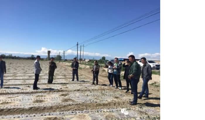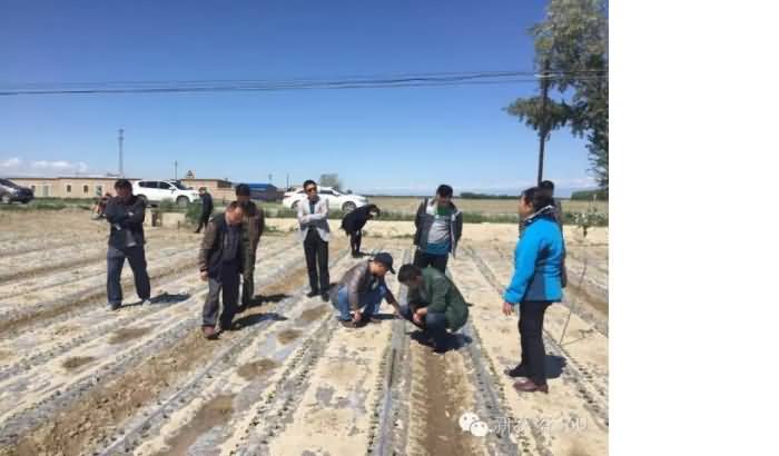 圖片說明2:89團(tuán)領(lǐng)導(dǎo)親自過問種植戶情況,種植戶匯報了這兩年使用情況,效果很好。