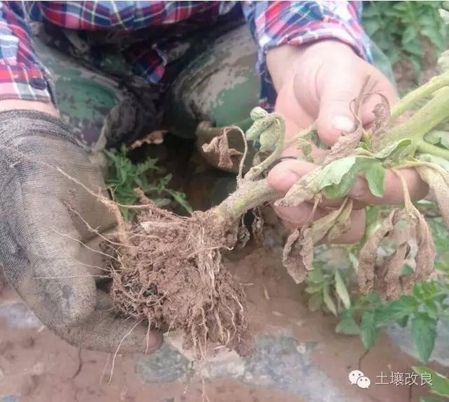 5、施用化肥不當,造成土壤有害物質殘留等等,以上種種原因導致番茄疫霉菌根腐病,誘發(fā)維管束發(fā)病,造成番茄爛根枯萎。