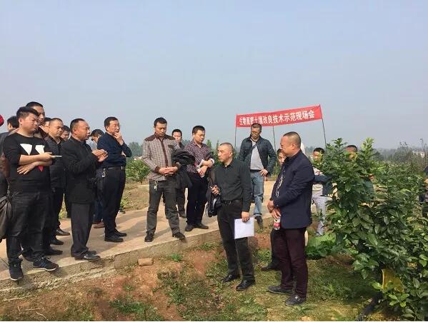 示范現(xiàn)場(chǎng)會(huì)由安岳縣政府、安岳縣檸檬產(chǎn)業(yè)局組織,全縣各鄉(xiāng)鎮(zhèn)檸檬專業(yè)技術(shù)員、種植大戶、合作社、檸檬產(chǎn)業(yè)公司、農(nóng)資公司一行100余人到場(chǎng)參加,并共同參觀了華嚴(yán)鎮(zhèn)安岳國(guó)家農(nóng)業(yè)科技園實(shí)施生物有機(jī)水肥一體化技術(shù)在檸檬生產(chǎn)上的應(yīng)用,該技術(shù)應(yīng)用由成都華宏生物科技有限公司與安岳檸檬產(chǎn)業(yè)局共同合作發(fā)起。