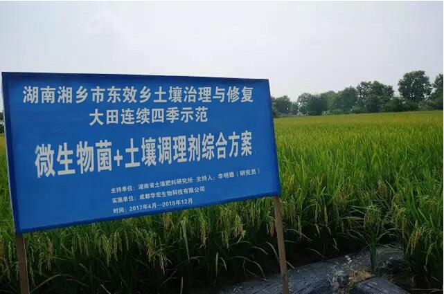 近年來,隨著我國工農(nóng)業(yè)的迅猛發(fā)展,對(duì)土壤環(huán)境造成了不同程度的污染,尤其是鎘污染問題已經(jīng)日益嚴(yán)峻,首當(dāng)其沖受到影響的就是農(nóng)業(yè)生產(chǎn)。如何科學(xué)有效地根治土壤鎘污染問題,在生物肥技術(shù)、土壤治理等領(lǐng)域成果突出的成都華宏生物科技有限公司,與湖南省農(nóng)科院土壤肥料研究所展開深入合作,通過李明德研究員的區(qū)域試驗(yàn),以成都華宏生物“神鋤”牌復(fù)合微生物肥、“施地佳”土壤調(diào)理劑為產(chǎn)品組合,取得土壤鎘污染治理技術(shù)方案的成功突破。